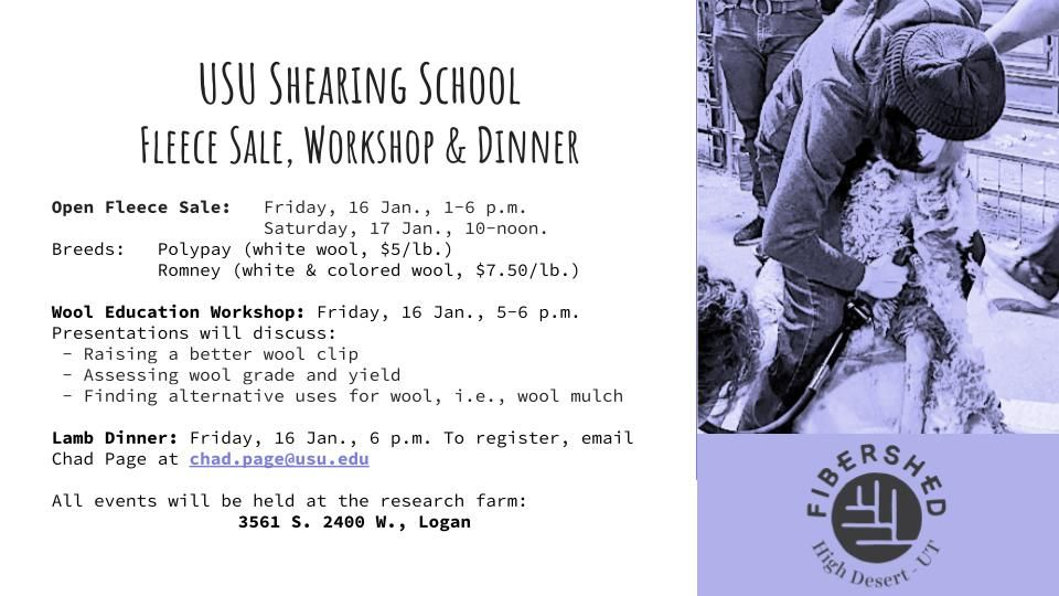 USU Shearing School Fleece Sale, Workshop and Dinner
